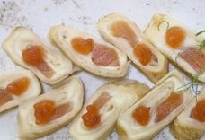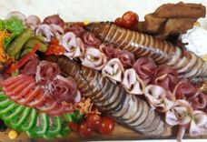 600 г • брускетты с семгой, сельдью и пармой (12 половинок)