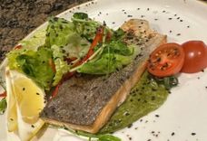 Корейка на кости с орегано, обжаренным картофелем и овощной сальсой